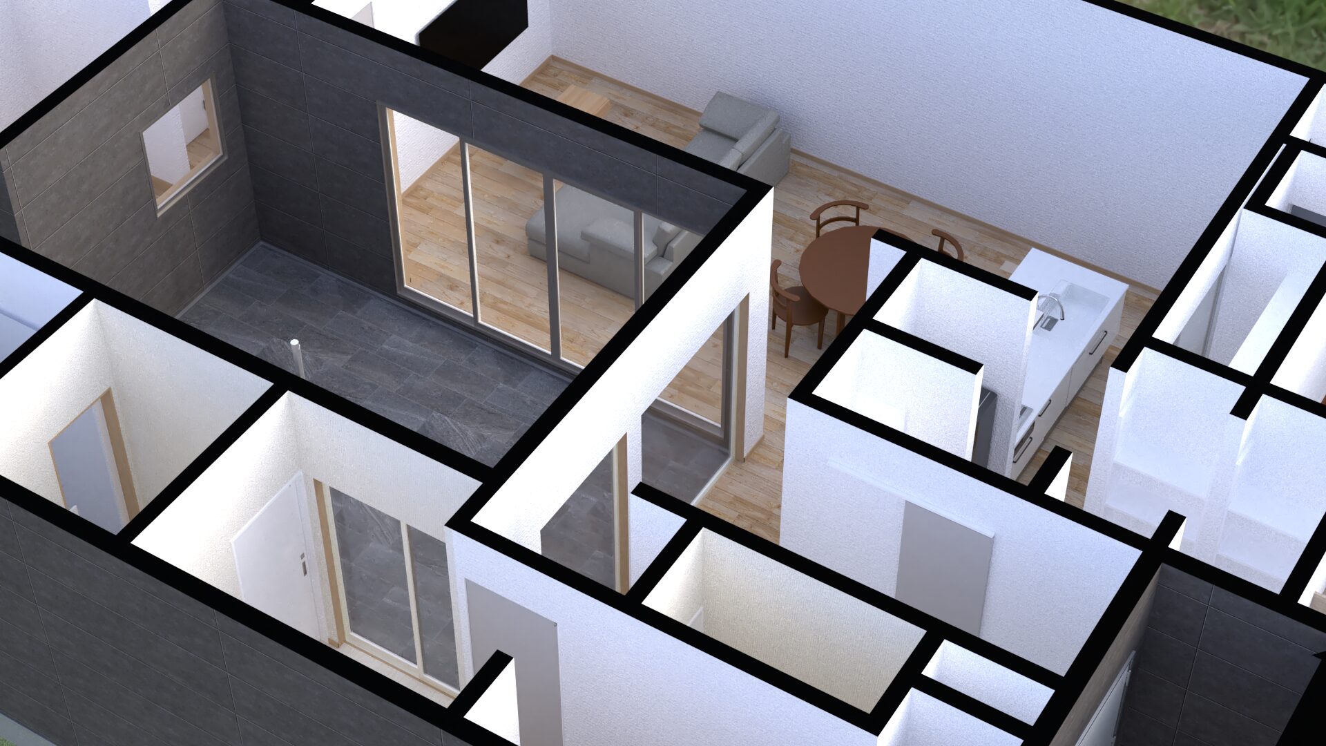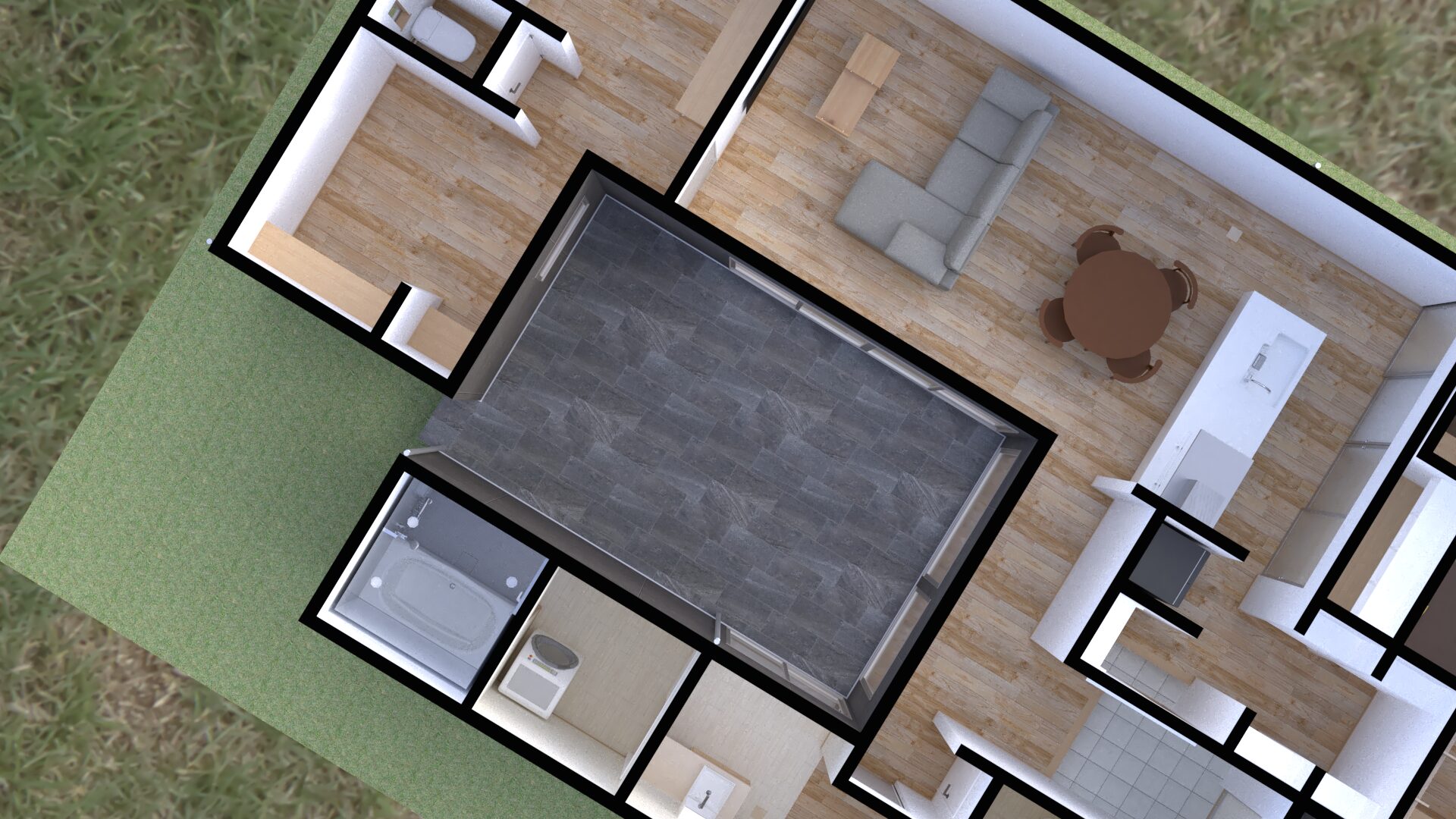 中庭をもつ30坪ほどのデザイン平家住宅。